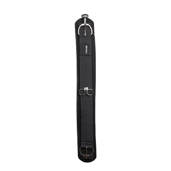 Cincha de neopreno con  poliéster que absorbe los golpes  y flexible para el movimiento del caballo. Hebillas de acero.